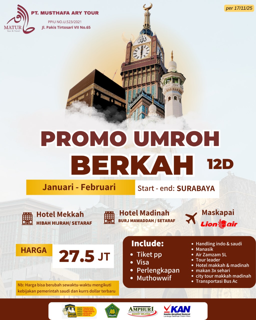 Harga dapat berubah sewaktu-waktu mengikuti kebijakan Pemerintah Arab Saudi dan kurs dolar terbaru.
